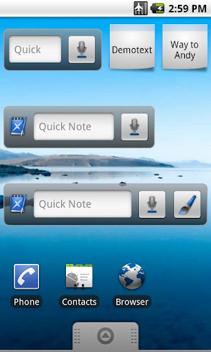 A note (notepad) application where you can create text-, voice- and paint-notes. Your notes can be organized in folders. You can create shortcuts on home, send notes, use live folders & much more!