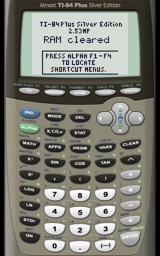 It fully emulates TI-84+, TI-84+ Silver Edition, TI-83+, TI-83+ Silver Edition, TI-73, TI-83, TI-85, TI-86, TI-82, and TI-81 calculators made by Texas Instruments. And yes, if you have got a tablet, it will become a really BIG TI calculator. AlmostTI also lets you save your calculations at any point and then select from several previously saved tasks.