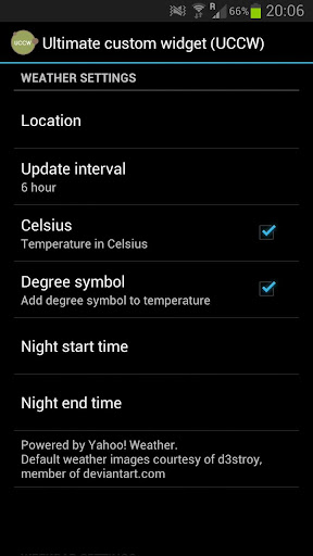 You are able to change settings about Temperature in C or F, location for the weather and more by opening UCCW app and changing settings from there.