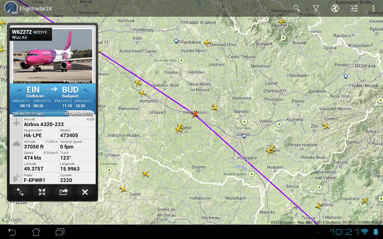 * Comprehensive information for each individual plane, including route, speed, altitude and more