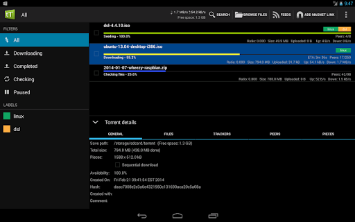 Overview: tTorrent is simply the best bittorrent client for Android based devices.