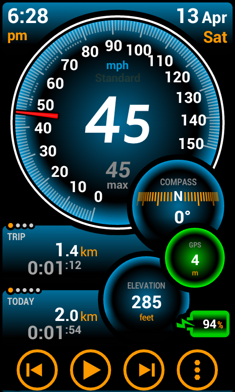 • Switchboard. Provides fast switching for speed units, activate HUD and more. Tap to Speedo scale to activate it.